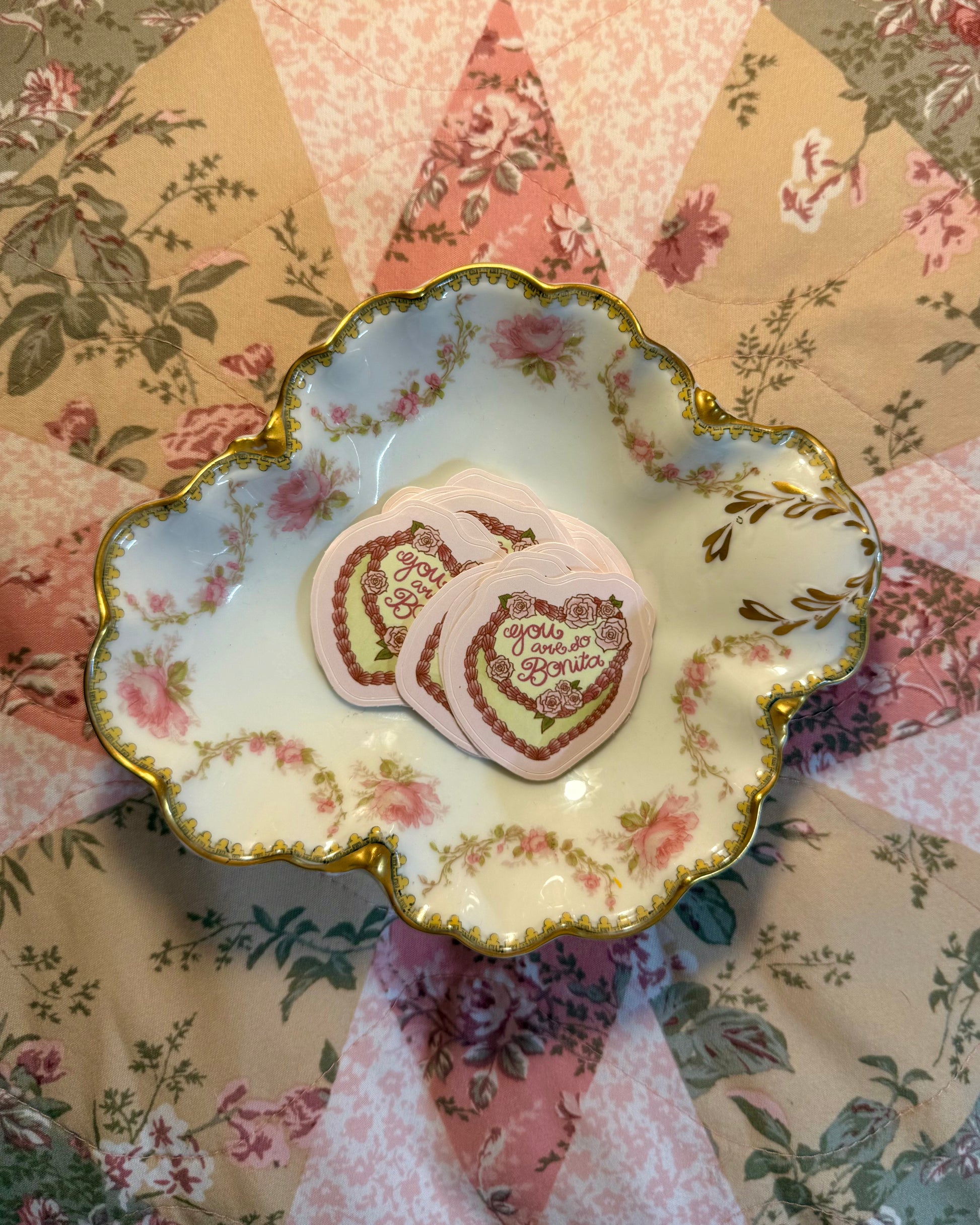 Hand-illustrated vintage heart cake sticker. The perfect positive pastelito to put on waterbottles, laptops, journals, and more! *